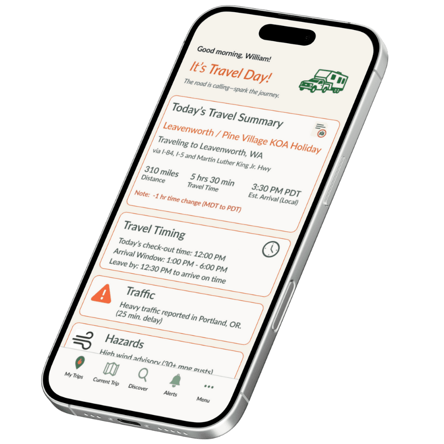 “We nearly took a 13'4” 5th wheel under an 11'8” bridge—Google Maps didn’t even flinch. Campfyre saved us by flagging the hazard and rerouting us in seconds.” — Rico & Sam, Weekend Warriors